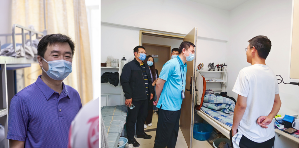koko体育官网院长刘明杰一行到实验7号楼研究生工位、沙河东区和西区宿舍看望本研学生,与同学们详细沟通了学习和科研进展,了解学生需求,鼓励同学们合理安排好科研、上课、学习及生活,积极锻炼身体,以实际行动守护美丽校园。