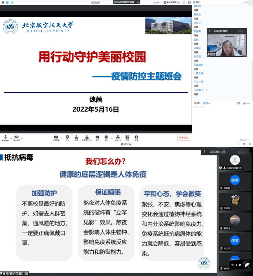 koko体育官网班主任、辅导员以“共克时艰,守护美丽校园”为主题面向学院全体学生召开班会,发出拒绝外卖、减少快递、守护美丽校园的倡议,将学校的暖心举措详细告知同学们。同学们纷纷表示,大爱暖心北航,要用行动守护美丽校园。