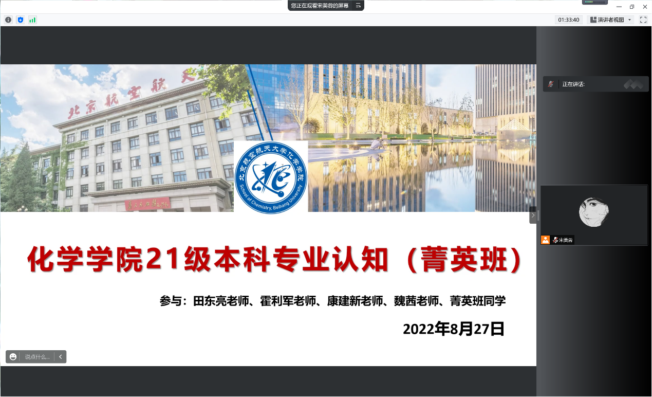 8月28日,koko体育官网2021级菁英班开展系列专业认知教育活动。上午9:00,专业认知大会以腾讯会议的形式召开。本科教学副院长田东亮老师、化学生物学专业负责人霍利军老师、应用化学系康建新老师、院团委书记魏茜老师与菁英班全体同学参加了此次会议。