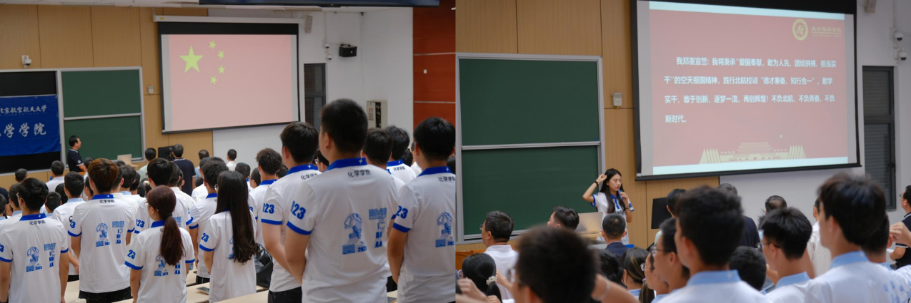 大会在庄严的国歌声中拉开了帷幕。齐唱雄壮的国歌后,集体观看《今日北航koko体育官网》,该视频生动形象地展现了koko体育官网的发展历程以及昂扬向上的精神风貌。随后,由koko体育官网教师代表李景老师、学生代表李超、丁索琪、盛昱皓、丁乙、崔雪纯同学依次发言。均讲述了对化学的热爱和追求以及对新生活的期待,展现了化院人有梦想、有勇气、有决心、有毅力的昂扬精神。在崔雪纯同学的领誓下,全体新生庄严宣誓,不负北航,不负青春,不负新时代!