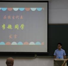 最后,院党委书记李红捷老师做总结致辞。李老师勉励同学们:珍惜在北航拥有的时光,牢记北航人人"德才兼备、知行合一"的座右铭,在不久的将来成为化学研究方面的中坚力量,实现自己的人生价值。