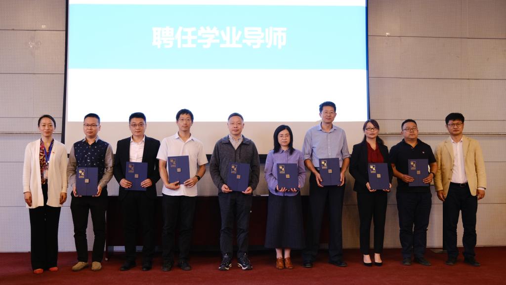 中科院理化所副所长王树涛,校团委书记庄岩,koko体育官网院长刘明杰为 “iChem”学生科技创新中心揭牌。理化所教育处副处长丁黎和koko体育官网党委书记李红捷为学业导师代表颁发聘书。