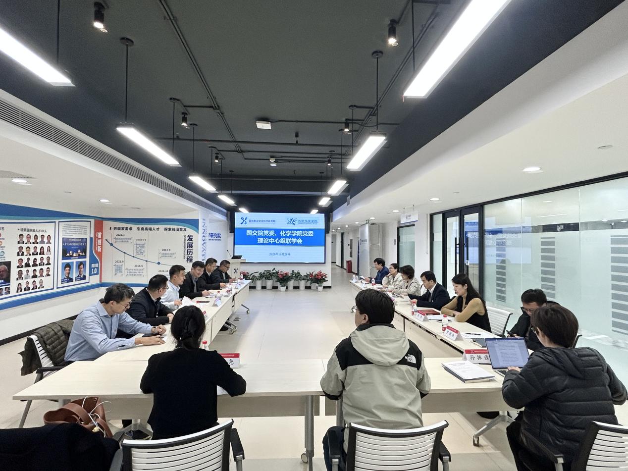 国交院党委书记张蕊在发言中表示,双方将以二十届四中全会精神为指引,锚定学院“十五五”发展目标,通过“党建+科研”双融双促模式,让全会精神融入实验室的每一次攻关,融入学科交叉的每一次探索;双方将聚焦交叉领域深化研究,联合培育学科交叉新的增长点,将“十五五”时期发展目标任务和战略举措转化为科研创新、学科建设的实际行动,为学校“双一流”建设及国家科技自立自强凝聚学科合力。