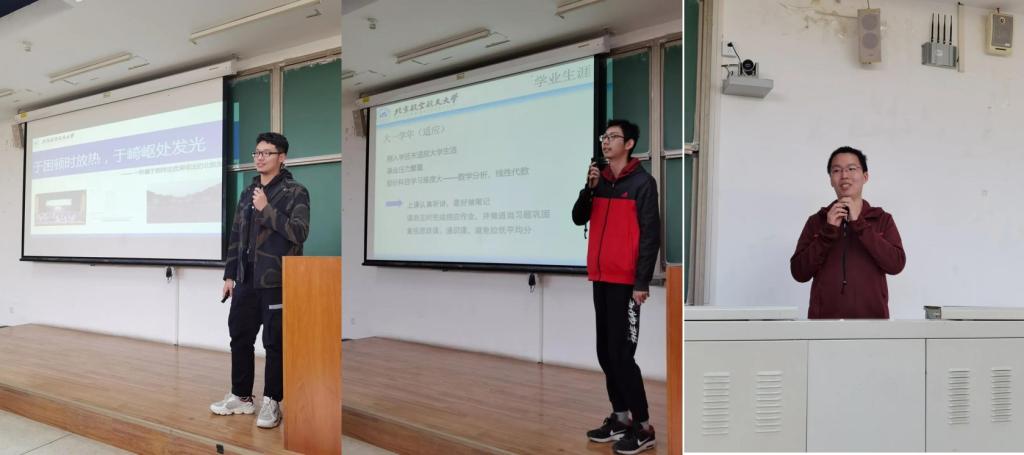 作为北航大学生科协项目部部长,koko体育官网学生会主席,高家楠同学以别具一格的开场吸引了所有人的注意。虽然拥有着GPA3.73和综合排名4/30的好成绩,但他在大一时却并不出众,在迷茫中他曾努力找寻着方向:分清优劣学科、自主完成作业、参加多项活动并取得名次,以及当学弟学妹们的答疑员完善自己的不足。凭借着筚路蓝缕式的努力,他一步步走到了今天,拿到了中科院理化所保研的资格。也正是这种“敢于闯出一片天”的精神,让在场的我们获益匪浅。他告诉我们四句话:要学会找到志同道合的朋友;深化内容以克服虚无;尽早做出决断及时止损;成为一个自己远比好学生重要。