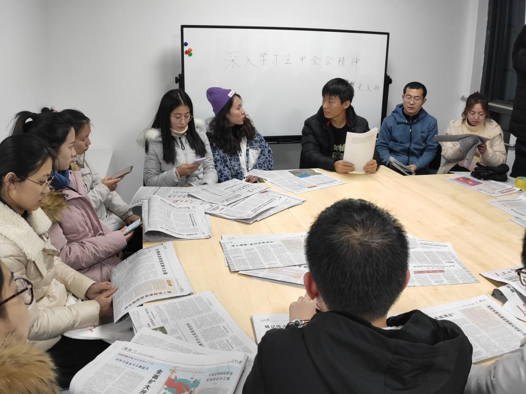 活动伊始,孙伟伟同志组织全体成员对《中国共产党第十九届中央委员会第五次全体会议公报》进行原文学习,并围绕公报内容进行了讨论交流,从而强化理解,提高政治认识,明确青年担当。随后分享了一系列视频、报刊、网络等资源供大家了解相关信息,阅读关于全会精神的评论文章,时刻关注最新报道。