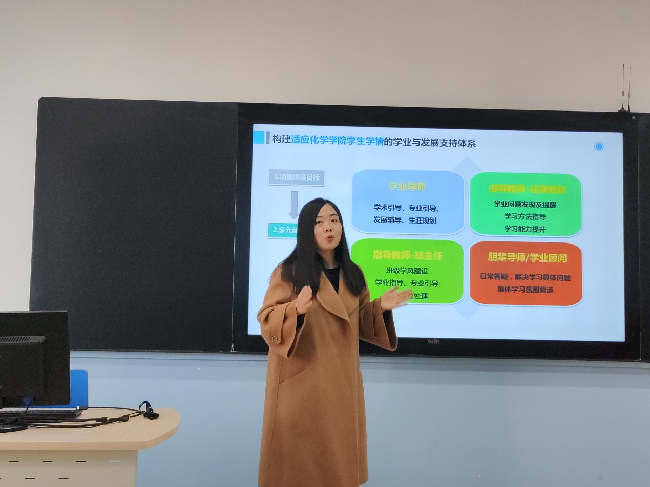 koko体育官网学业与发展支持中心负责人魏茜介绍中心架构及建设情况。为了促进和保障学生的学业发展,koko体育官网构建了适应koko体育官网学生学情的学业与发展支持体系。从学有所成、学有所依、学有所用的建设目标出发,设计了“小伙伴计划”、“导学时光”、“学习锦囊”、“朋辈辅导”等多项活动,旨在激发同学们的学习热情,增强学习能力与动力,做好学业规划与生涯规划。对于未来的展望,魏茜表示,希望koko体育官网的学业与发展支持中心能形成一种可复制可推广模式,不仅要在学院内推广,更要走出化院,走出北航。