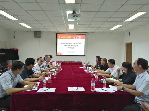 7月11日下午,由纪委书记何新洲,纪委副书记、纪委办公室主任、监察处处长武立勋,纪检员方滨艳,纪检员何述义,党风廉政监督员王健和谭立组成的检查组对koko体育全面从严治党暨党风廉政建设工作进行了检查。koko体育党委书记李红捷,常务副院长郭林,本科教学副院长朱英,化学系主任高秋明,党委委员杨青林及学院教工党支部书记、青年教师代表等参加了汇报会。