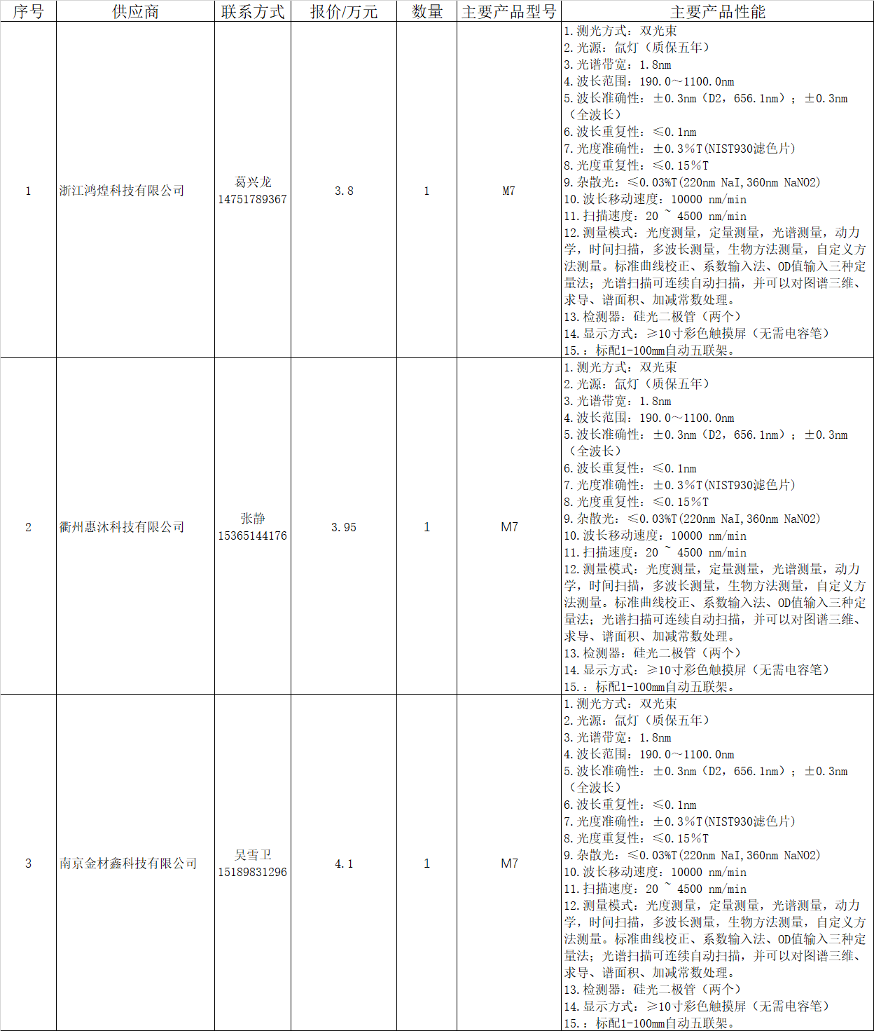 1. 采购名称:M7紫外可见分光光度计