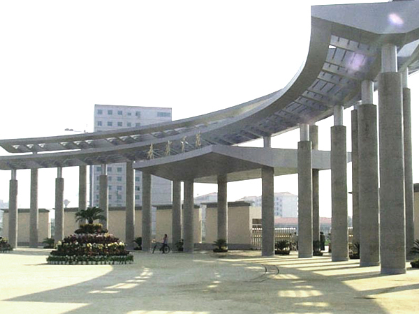 学校大门设计新颖独特,89米长的内弧似展开的双臂,喻意欢迎四方学习来校深造,两边各设六块文化墙,可镶嵌具有本地和学校特色的浮雕,以充分体现高等学校的文化氛围,文化墙之间用玻璃隔断,给人以通透的视觉,体现学院开放式办学的思想。
